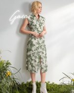 Inicio Casual Wear Vestido Floral Verde De Botones